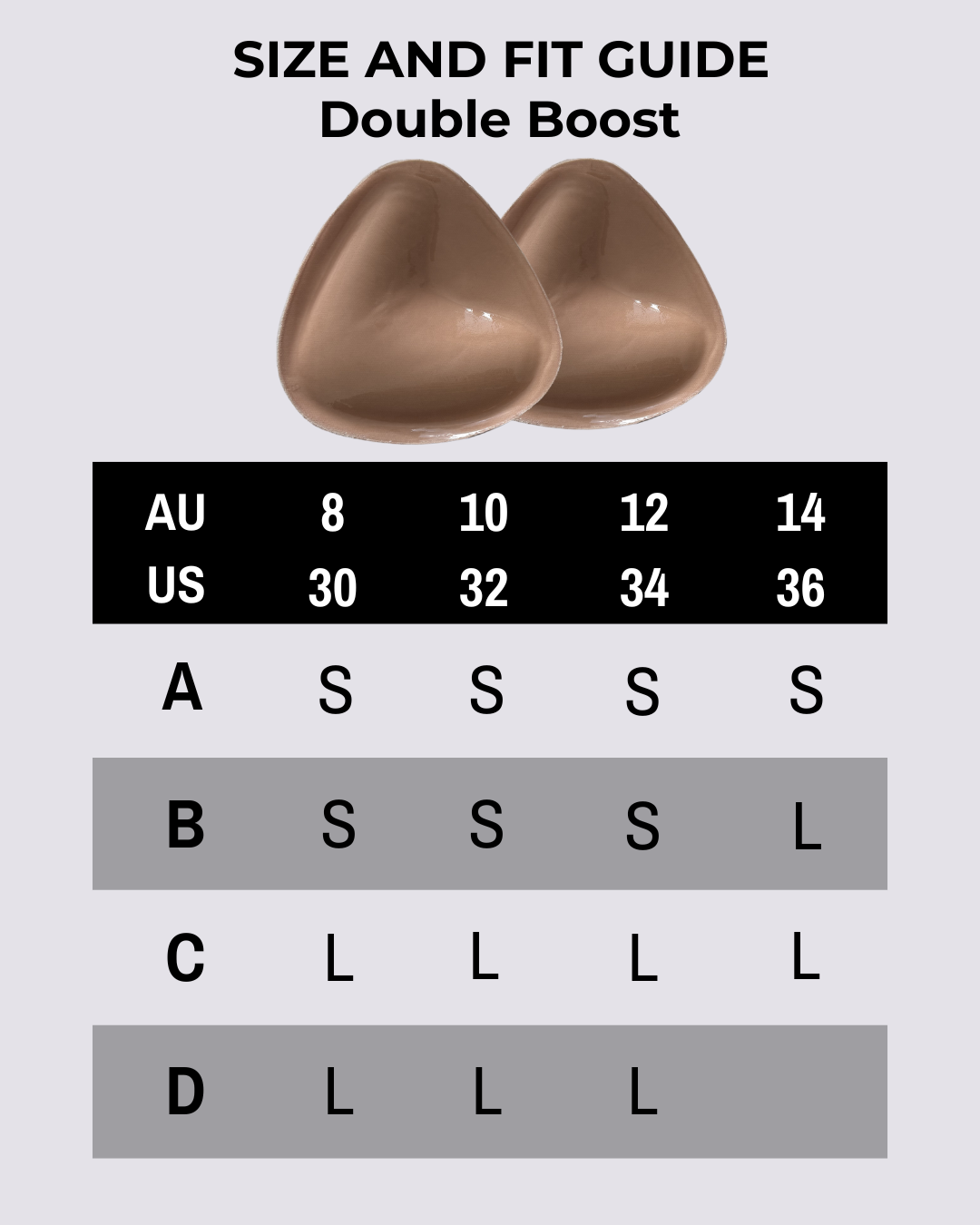 For the best fit, the inserts should be worn with structured or tight-fitting clothing. The Double Boost requires a thicker, snug-fitting fabric.